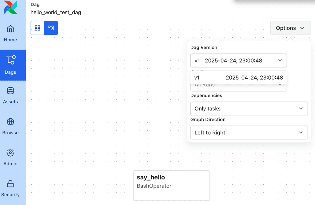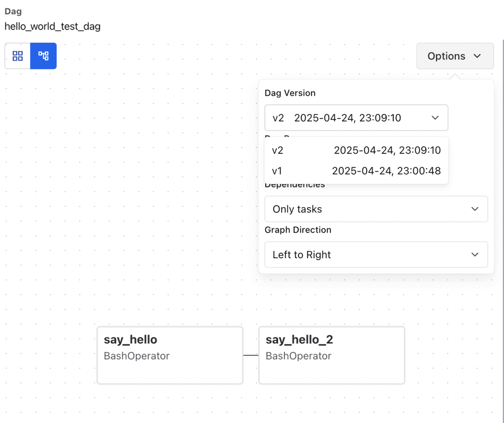 To show the DAG versioning, let’s create a test DAG first.